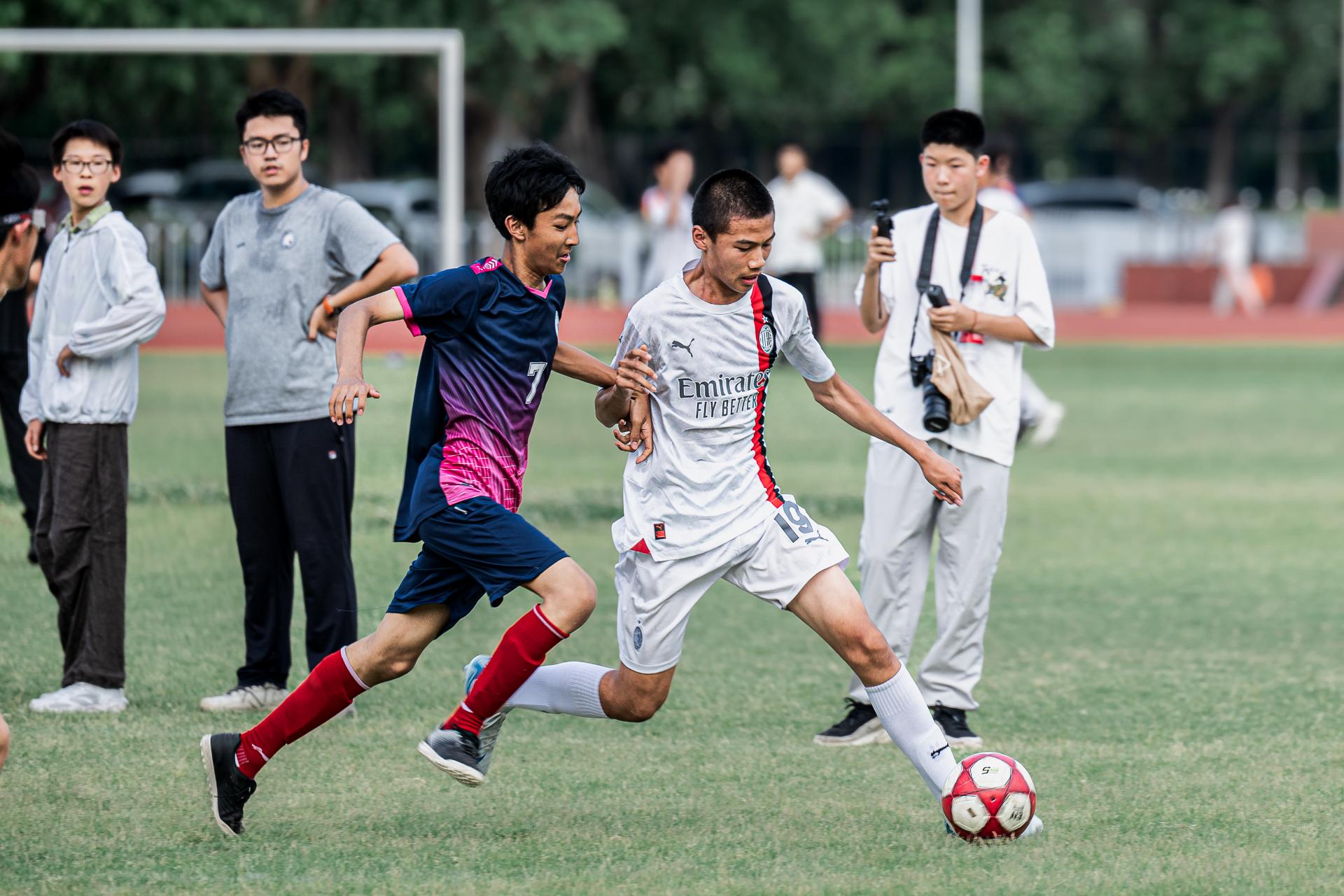 与此同时,初二年级足球联赛同样精彩纷呈。初二(7)班以流畅的传控技术与犀利的进攻突破战术力压群雄,成功登顶冠军宝座。初二(9)班以稳健防守与快速反击获得亚军,初二(4)班与初二(2)班分列第三、第四名。每场比赛,球员们的奋力拼抢都引得全场沸腾,喝彩连连,球员们用汗水和拼搏精神展示了永不言弃的体育精神。