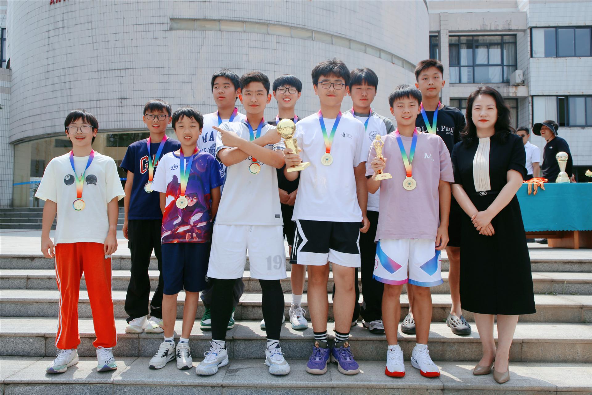 赛后,学校领导为获奖班级颁发奖杯、奖牌与证书,并鼓励全体学生将赛场上的拼搏精神延续到学习与生活中。未来,我校初中部将继续以多元体育活动为载体,深化"五育并举"理念,助力学子们健康第一,快乐成长,成为体魄强健、全面发展的综合型人才!