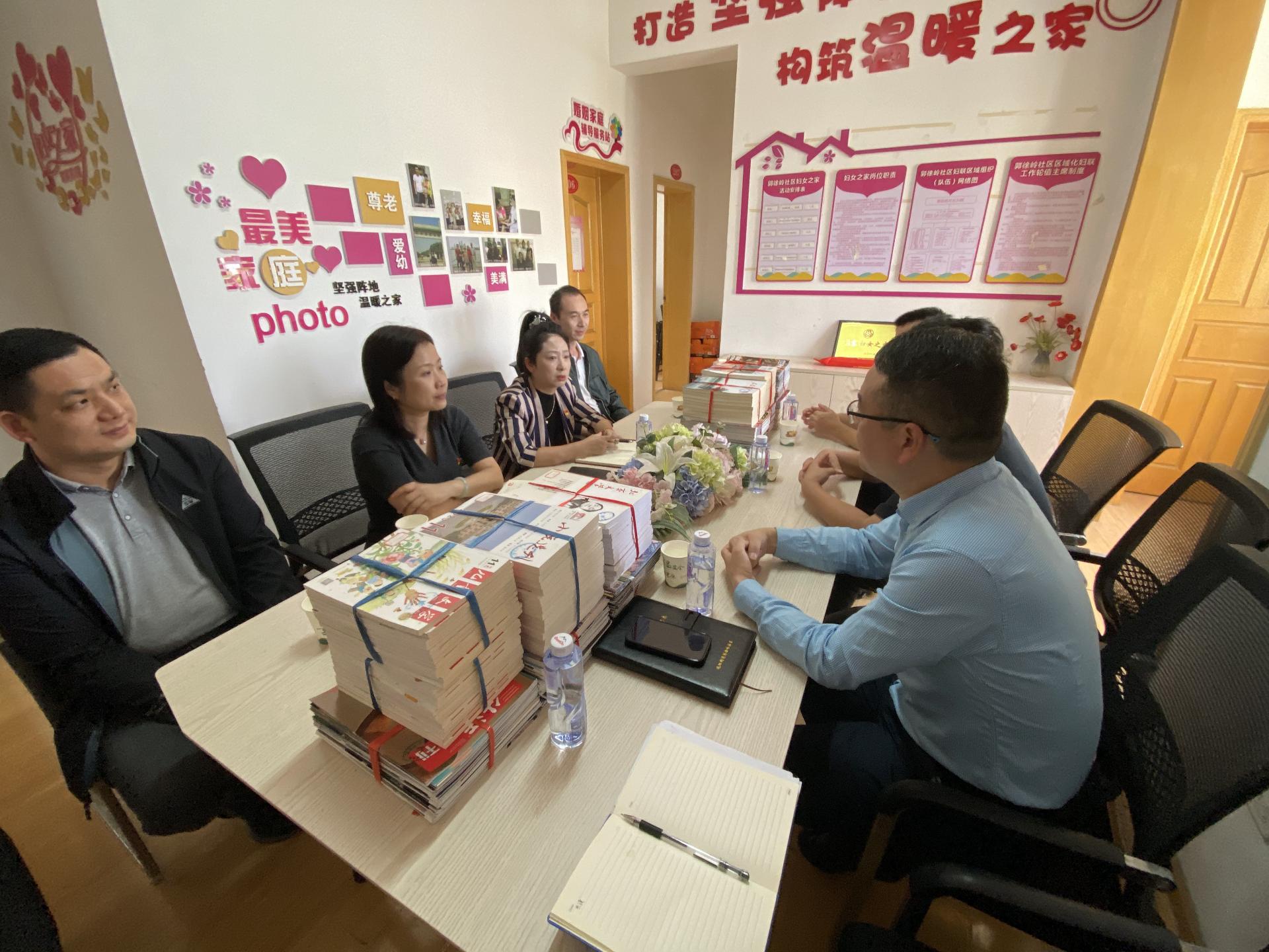 10月14日下午,为丰富社区居民精神文化生活,深化校社联动机制,武汉外国语学校副校长傅彦、校办公室主任钱晶晶带领曾在社区挂职锻炼的行政支部书记代林波、教师杨健一行,前往武汉经济技术开发区沌阳街道郭徐岭社区捐赠图书。